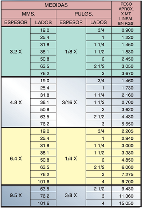 Contamos con ángulos de acero inoxidable, con esquinas redondeadas y cadradas, de tipo AISI 304 y 316.