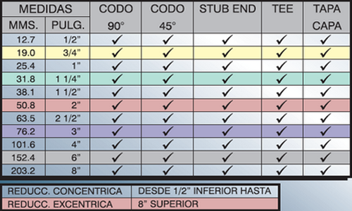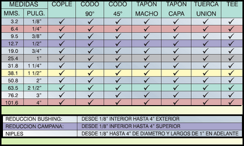 Conexiones roscadas de acero inoxidable, con el cual se cuenta con tipos de AISI 304 y 316, Ced. 10 y ced. 40